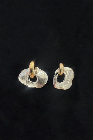 Een asymmetrisch duo gemaakt van zilver en goud.Handgemaakt in ons atelier in Rotterdam.